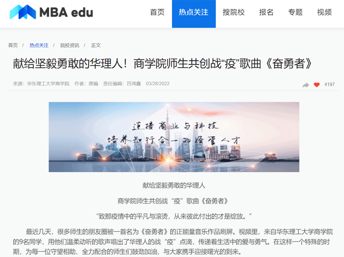 【媒体报道集锦】献给坚毅勇敢的华理人!商院师生共创战“疫”歌曲《奋勇者》