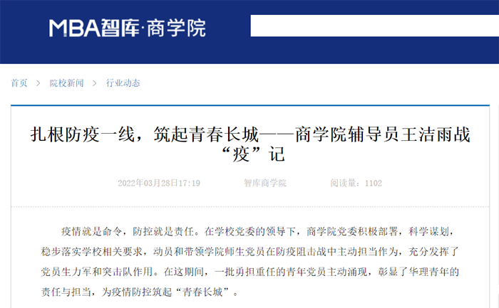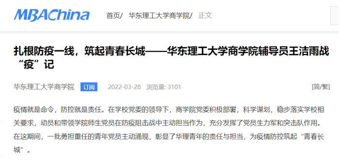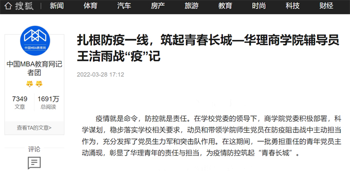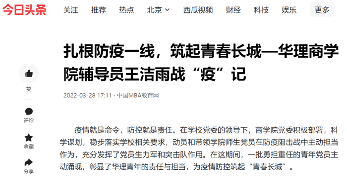 【媒体报道集锦】扎根防疫一线,筑起青春长城——商学院辅导员王洁雨战“疫”记