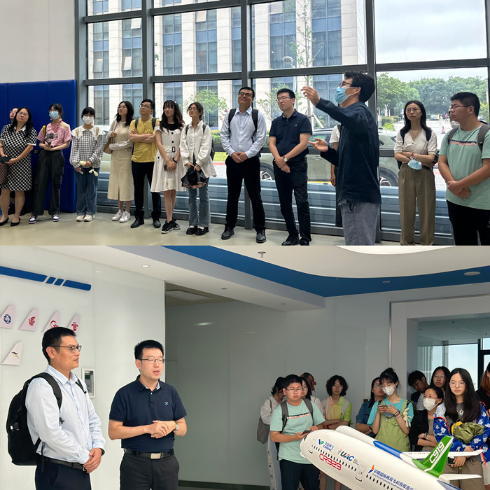 离开超算中心,师生一行来到中国商飞上海飞机客户服务公司。中国商飞客服公司人力资源部副部长王洪、教育培训室副主任刘竹霖接待了商学院一行。在王洪的带领下,师生通过沙盘了解了中国商飞公司“一个总部、六大中心”的总体布局、发展历程以及在国产大飞机研发领域取得的重大成就,王洪表示,中国商飞公司以“让中国的大飞机翱翔蓝天”为使命,是实施国家大型飞机重大专项中大型客机项目的主体,也是统筹干线飞机和支线飞机发展、实现我国民用飞机产业化的主要载体。